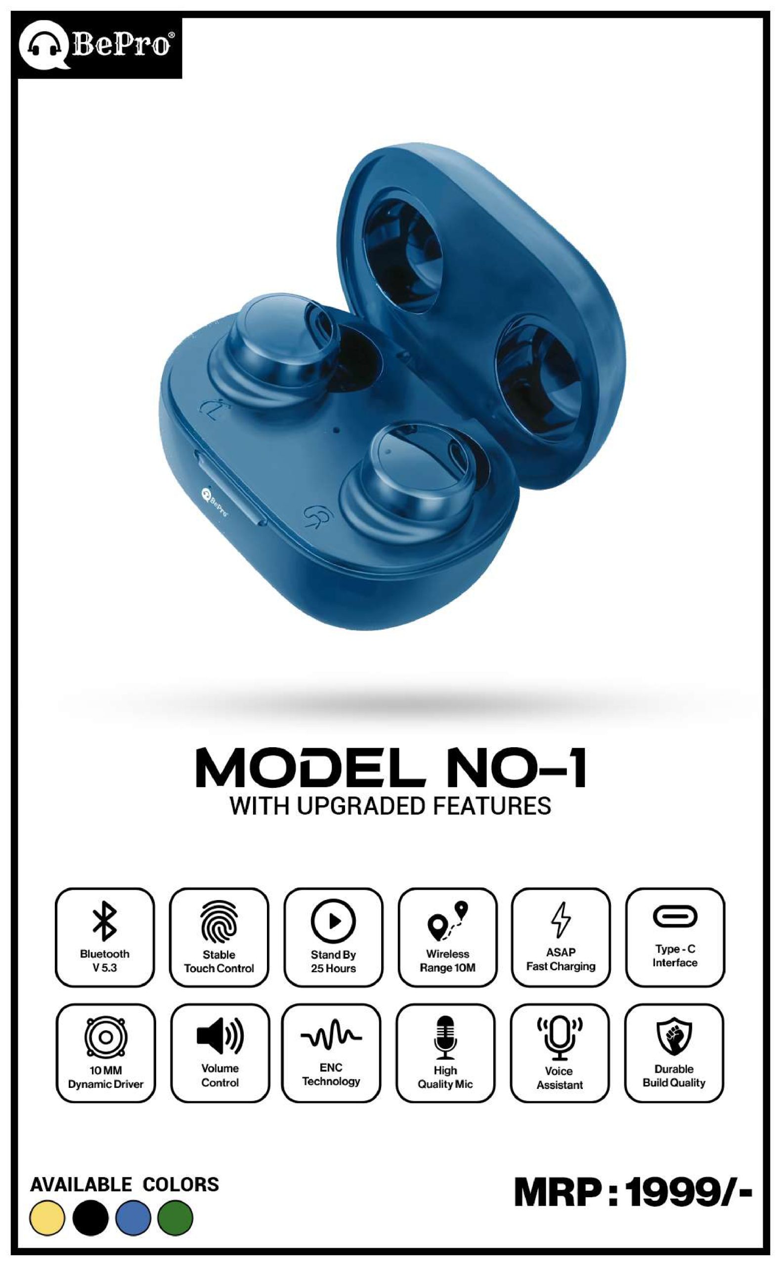 Introducing the MODEL NO-1 BePro Earbuds . 1. ENC Tchnology 2. Bluetooth V 5.3